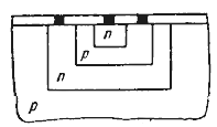 Многослойные структуры с несколькими p-n-переходами получают, повторяя процессы окисления, формирование маски, диффузии донорных или акцепторных примесей в микрообласти. Пример многослойной структуры приведен на рис. 1.