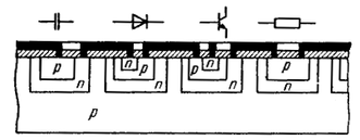 Универсальным элементом монокристаллической микросхемы служит р-n-переход, являющийся слоем, изолирующим микрообласти, сформированные в кристалле.