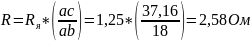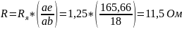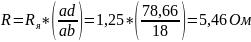 R = 0,466 * (64,67 /24,67) = 1,22 Ом,