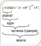 Склад міцели виражають певною формулою. Напр. склад міцели гідрозолю йодиду срібла, утвореного при взаємодії нітрату срібла в розчині з надлишком йодиду калію, виражається формулою: