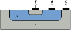 Упрощенная схема поперечного разреза биполярного NPN транзистора