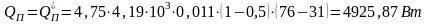 6. Определим номинальный тепловой поток отопительного прибора, который необходимо установить в данном помещении: