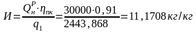 Учитывая КПД парового котла, определяем теплоту, первоначально внесённую в установку за счёт сгорания топлива: