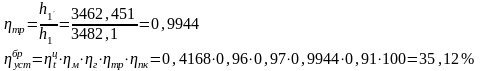 Подсчитаем КПД установки (брутто) на клеммах электрогенератора: