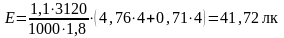 Кз – коэффициент запаса, принимаемый равным 1,8 для заданного типа помещения из таблицы 4.4 в [3].
