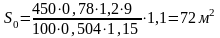 Зная значение всех параметров, рассчитаем площадь боковых проемов при естественном освещении по следующей формуле: