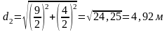 Далее определяем угол между высотой потолка и соответствующим отрезком d: