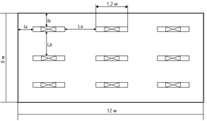 Учитывая формулу (1.5), получаем, что для нахождения расстояния между светильниками LВ, нужно ширину помещения разделить на 3: