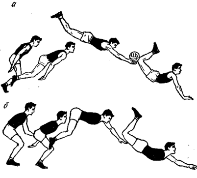 Быстрота выполнения переката с последующим переворотом в упор лежа способствует быстрому включению волейболиста и игру. Точный отскок мяча вверх достигается симметричным расположением сведенных вместе кистей рук.