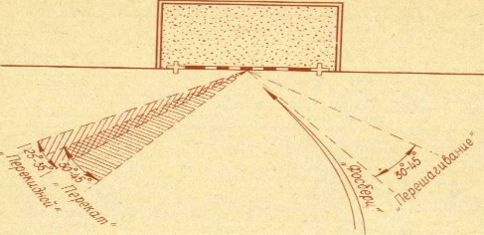 Способ «перекат» (рис. 3) непосредственно предшествовал появлению «перекидного» способа прыжка. Разбег в «перекате» выполняется под углом 35 – 45°, а отталкивание в 80 – 100 см от планки ближайшей к ней ногой. Прыгун совершает энергичный мах свободной ногой и, ложась боком на планку, подтягивает к ней толчковую ногу. Тело прыгуна уже в отталкивании получает импульс к вращению вдоль планки. Подтягивание к груди толчковой ноги и опускание за планку маховой ноги одноименной руки способствует усилению вращения. В результате этого вращательного движения по продольной оси спортсмен поворачивает грудью вниз и приземляется на толчковую ногу и руки.