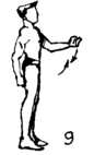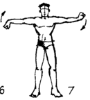 | 7–8 раз | Держа руки прямо, неподвижно, сгибать кисти вверх и вниз, сильно напрягая мышцы и чувствуя, будто хотите что-либо тяжелое придавить к низу и оторвать к верху. Тело неподвижно. Дыхание произвольное. |
