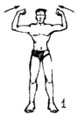 | 8–10 раз | Напрягая мышцы плечевого пояса, поднять руки вверх так, как будто вы поднимаете груз. Затем, сделав вдох, с напряжением широчайших мышц спины опускать руки вниз – выдох. |