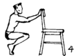 | 4. | И.П. – стойка носки врозь, пятки вместе, с опорой руками о спинку стула. 1–2. Присед, колени врозь. 3–4. Встать в И.П. | 7–8 раз | Приседать медленно, с напряжением, до касания ягодицами пяток. Затем медленно, как будто бы поднимая на плечах большую тяжесть, начинайте выпрямлять ноги. Дыхание: приседая – выдох, вставая – вдох. |