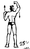 | 15. | И.П. –стойка, руки к плечам. 1. Выпрямить правую руку вверх. 2. Смена положений рук. | 10–12 раз | С напряжением поочередно меняйте положение рук. Поднимая руку вверх – напрягайте трицепс, опуская руку к плечу – бицепс и широчайшие мышцы спины. Дыхание равномерное. |