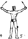 | 5–7 раз | Руки выпрямить возможно дальше назад, напрячь спину и трицепсы, На 2-й счет напрягайте живот и бицепсы, на 4-й – поясницу и грудь. Дыхание: на первые три счета – вдох, на 4 – выдох. |