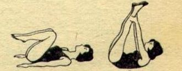 И.П.- лёжа на спине, ноги и руки в стороны, 1-3 –согнуть колени, обхватить их руками, голову на грудь (группировка), 4- И.П. (как вариант: перекат вперёд назад, вправо, влево). 3-4 раза.