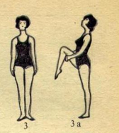 И.П.- то же,1-руки в стороны, согнуть колено правой ноги, 2-сцепитьруки под коленом и подтянуть его к груди, смотреть прямо, 3-держать равновесие, 4-И.П.; то же, стоя на другой ноге. 3-4 раза.