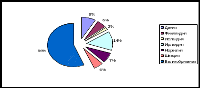 ДИАГРАММА 2.4. Денежные поступления от международного туризма в странах Северной Европы в 2007 г.
