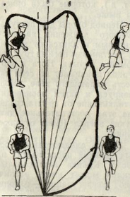 Большое значение имеют энергичные движения рук вперед-назад. В стартовом разбеге они в основном такие же, как и в беге по дистанции, но с большой амплитудой в связи с широким размахом бедер в первых шагах со старта. На первых шагах со старта стопы ставятся несколько шире, чем в беге по дистанции. С увеличением скорости ноги ставятся все ближе к средней линии. По существу бег со старта – это бег по двум линиям, сходящимся в одну к 12-15-му метру дистанции.