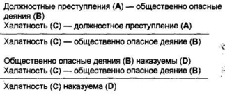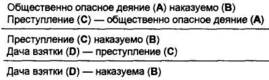 Если обвиняемый виновен в заведомо незаконном аресте (а), то он подлежит уголовной ответственности за преступление против правосудия (с); если он виновен в заведомо незаконном задержании (b), то он также подлежит уголовной ответственности за преступление против правосудия (с). Обвиняемый виновен или в заведомо незаконном аресте (а), или в заведомо незаконном задержании (b)