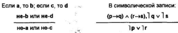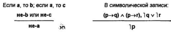 Возможен и другой ход рассуждения. Допустим, предположения о том, что пожар возник вследствие неосторожного обращения с огнем или в результате самовоспламенения хранящихся на складе материалов не подтвердилось. В этом случае умозаключение примет форму отрицающе-утверждающего модуса и будет построено по схеме: