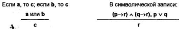 Утвердительный вывод получен посредством отрицания: отрицая один дизъюнкт, мы утверждаем другой.