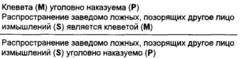 Затем по правилам вывода получаем следствия из всех имеющихся посылок и допущений до тех пор, пока ни получим две противоречащие друг другу формулы (В и ˉ|В), что свидетельствует о несовместимости допущения косвенного доказательства с другими допущениями и посылками. Отсюда делается вывод о его ложности. Тогда в вывод вписывается строка ˉ|ˉ|Xn и тем самым допущение косвенного доказательства исключается. Например, осуществим косвенный вывод:
