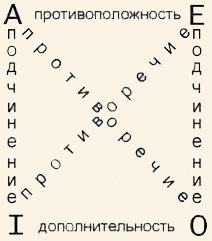 Схема, придуманная в Средние века для систематизации и наглядного представления отношений между категорическими суждениями: