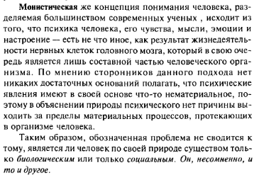 Из признания биологических и социальных различий между людьми и их неповторимости проистекают два принципиальных подхода к пониманию целостности человеческой природы: дуалистический и монистический.