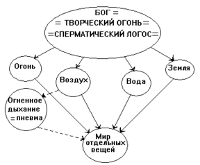 Но при этом считается, что творческий огонь в соединении с воздухом составляет «огненное дыхание» (пневму), которая пронизывает весь мир и связывает его в единое целое.