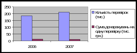 | Сума донарахувань на одну перевірку (тис. грн.) | 13 | 10 | -3 |