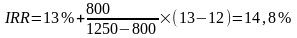 Внутренняя норма окупаемости (прибыли) IRR — уровень доходности, который в применении к поступлениям от инвестиций в течение жизненного цикла дает нулевую чистую текущую стоимость. Это означает, что дисконтированная величина доходов точно равна дисконтированной величине капитальных затрат (дисконтирование денежных потоков дает возможность устранить разницу во времени возникновения этих потоков, связанных с различными проектами, путем дисконтирования по их текущей стоимости).