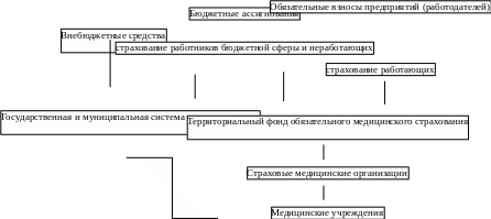 Средства обязательного медицинского страхования аккумулируются в федеральном внебюджетном фонде и внебюджетных фондах субъектов РФ (включая их филиалы), называемых территориальными фондами обязательного медицинского страхования (ОМС). В отличии от трех других государственных социальных внебюджетных фондов система ОМС реализуется Федеральным и территориальными фондами ОМС, независимыми друг от друга в организационном плане.