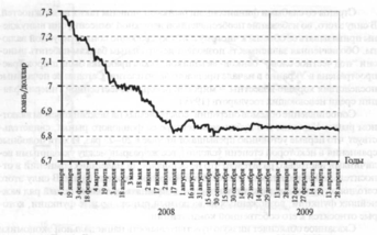 Рис. 9. Динамика курса юаня относительно доллара в 2008-2009 гг.