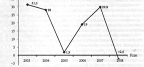 Рис. 5. Украина: годовые темпы прироста инвестиций в основной капитал в 2003-2008 гг.