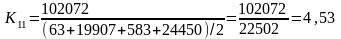 3) Коэффициент оборачиваемости дебиторской задолженности (К11) определяется как отношение выручки от продажи продукции, товаров, работ, услуг (ф. №2. Стр. 010) к величине дебиторской задолженности (ф. №1. Стр. 230 + стр. 240).