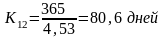 4) Средний срок оборота дебиторской задолженности (КI2) определяется как отношение количества дней в году (квартале, месяце) к коэффициенту оборачиваемости дебиторской задолженности: