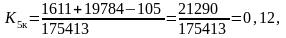 1) Коэффициент отношения обшей задолженности предприятия (организации) к итогу актива баланса (К 5) :