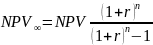 2) Рассчитываем суммарный приведенный эффект по формуле бесконечно убывающей геометрической прогрессии