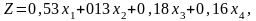 Z= 0,717*X1+0,847*X2+3,107*X3+0,420*X4+0,995*X5