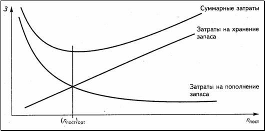 Графически оптимальный объем рассчитывается при помощи следующей модели: