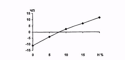 На основе расчетов балансов была построена зависимость чистой прибыли (ЧП) от величины торговой наценки (Н) - в%. Эта зависимость представлена на рис.3.