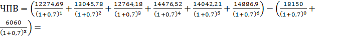 Послідовно збільшуючи ставку дисконтування, необхідно знайти таке значення ставки дисконтування. за якого ЧПВ дорівнює нулю.