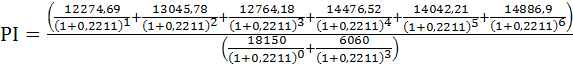 Рентабельність інвестицій PI – це показник, що дозволяє визначити, якою мірою зростає цінність фірми (багатство інвестора) у розрахунку на 1 грн. інвестицій. Розрахунок цього показника рентабельності здійснюється за формулою