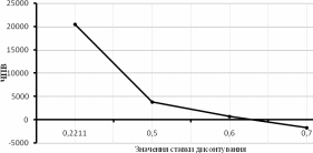 Рисунок 2 – Графік залежності ЧПВ від ставки дисконтування
