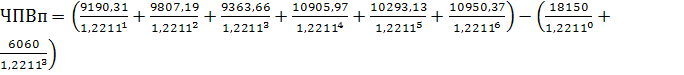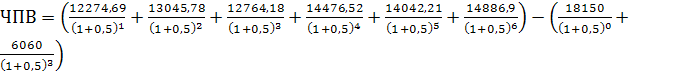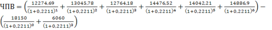 Розрахунок чистої приведеної вартості має на меті визначення інтегрального економічного ефекту за весь період реалізації проекту. В загальному вигляді формул для розрахунку ЧПВ має вигляд