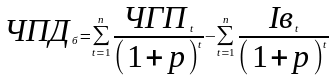 Якщо інвестиційні витрати, пов'язані з майбутньою реалізацією інвестиційного проекту, здійснюються в декілька етапів, розрахунок показника чистого приведеного доходу (ЧПДб) здійснюється за наступною формулою: