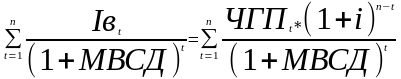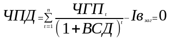 Внутрішню ставку доходності (ВСД) можна охарактеризувати як дисконтну ставку, за якою чистий приведений дохід в процесі дисконтування буде приведений до нуля. Розрахунок показника ВСД здійснюється на підставі наступної формули: