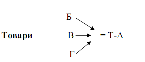 За першої, або простої форми вартості один товар А, наприклад, обмінювався на другий товар Б випадково и без ніяких пропорцій. Але і тут вже другий товар Б для першого товару А слугував вимірювачем вартості, або еквівалентом.