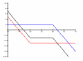 Инвестор использует стратегию «обратный спрэд медведя», покупая опцион пут с курсом исполнения 50 долл. и премией 5 долл. и продавая опцион колл с курсом исполнения 60 долл. и премией 2 долл. Изобразить графически позицию по каждому из опционов и синтетическую позицию инвестора. Каков будет финансовый результат данной стратегии, если в момент истечения опциона курс спот составит 63 долл.